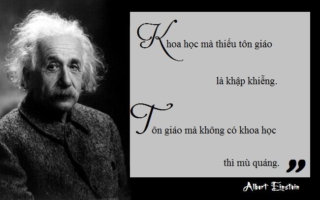 Sinh thời, nhà vật lý thiên tài Einstein đã nhiều lần nhắc tới tôn giáo. Dù đam mê với khoa học, đặt niềm tin vào đó và nhìn mọi thứ dưới góc nhìn chuyên môn, nhưng Albert Einstein từng khẳng định khoa học luôn đi cùng với tôn giáo: "Khoa học mà thiếu tôn giáo là khập khiễng. Tôn giáo mà không có khoa học thì mù quáng".