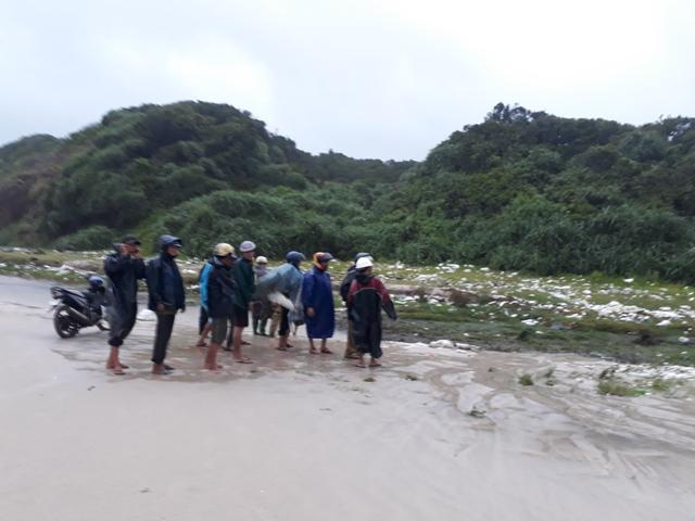 Người dân phát hiện một xác chết đang phân hủy dạt vào bờ biển xã Vĩnh Kim, Vĩnh Linh, Quảng Trị. Ảnh: CTV