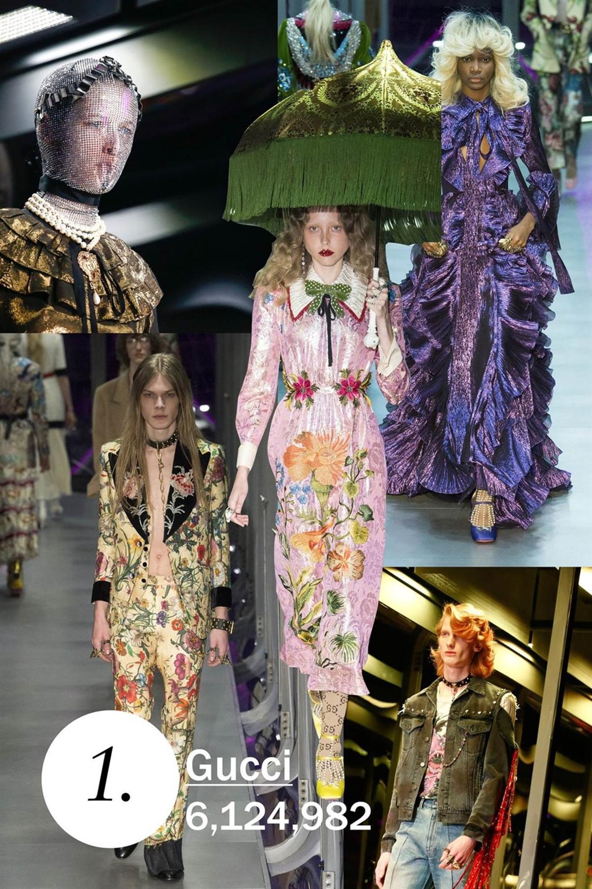 Tạp chí Vogue vừa công bố danh sách 10 bộ sưu tập thuộc khuôn khổ tuần lễ thời trang thu 2017 có lượt xem nhiều nhất trên trang. Xếp ở vị trí đầu tiên là bộ sưu tập của Gucci với hơn 6 triệu lượt truy cập (dù Gucci không có mặt trong nhóm bộ sưu tập ấn tượng nhất do Vogue bình chọn). Với mùa thu đông 2017, Gucci lần đầu tiên giữa show thời trang nam và nữ làm một. Giới mộ điệu nhận xét đây là bộ sưu tập xuất sắc.