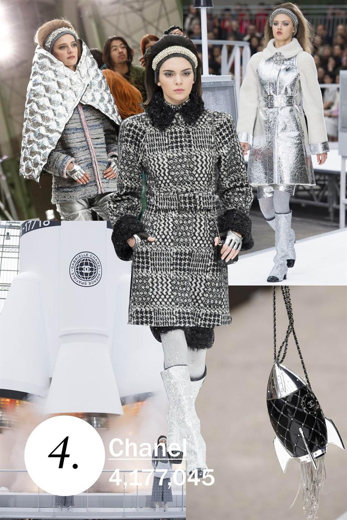 Chanel cũng không thuộc top 10 bộ sưu tập mùa thu 2017, nhưng giới mộ điệu thì không thể ngó lơ trước những "chiêu trò" của ông trùm Karl Lagerfeld. Nhà thiết kế 83 tuổi mang hẳn con tàu tên lửa khổng lồ lên sân khấu. Và ở phần kết, con tàu vũ trụ bất ngờ chuyển động, bay lên cao.
