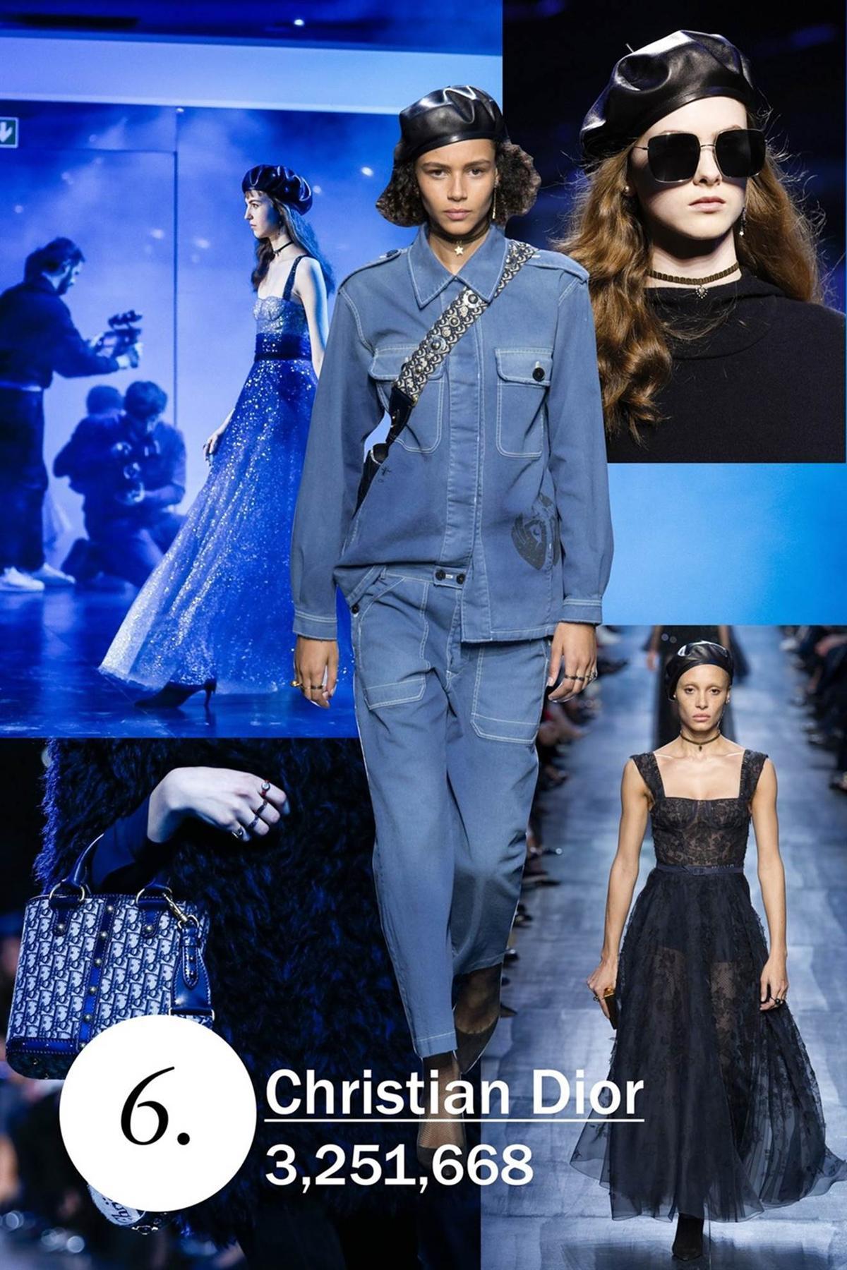 Thương hiệu Dior xếp thứ sáu với hơn 3 triệu lượt truy cập. Đây là bộ sưu tập thứ hai của Maria Grazia Chiuri kể từ khi đảm nhận vị trí giám đốc sáng tạo. Dior dưới thời Maria Grazia Chiuri có nhiều thay đổi - tràn ngập màu xanh navy, mũ beret, đồ jeans... và trên tất cả là tiếng nói nữ quyền.