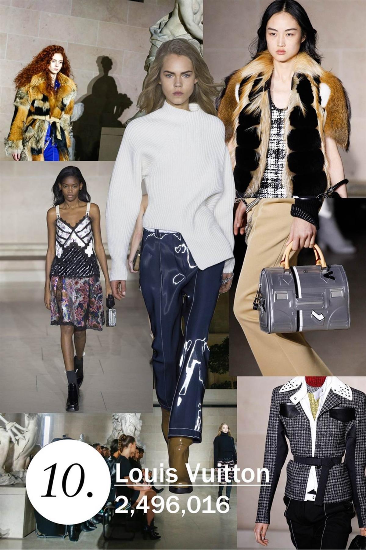 Chốt lại bảng xếp hạng là bộ sưu tập của nhà mốt Pháp - Louis Vuitton. Chất liệu da, lông, satin được Nicolas Ghesquière sử dụng khá nhiều cho mùa thu năm nay. Dù không chê, Vogue cũng không chọn đây là một trong những bộ sưu tập "đỉnh" nhất.
