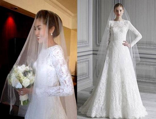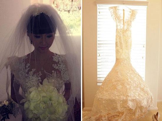 Chiếc váy cưới hiệu Vera Wang có giá khoảng hơn 300 triệu đồng
