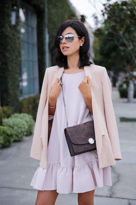 Những chiếc đầm có phần dây thắt ngang eo rất hiệu quả trong việc che đi những ngấn bụng không săn chắc. Thời tiết đầu xuân ấm áp cho phép bạn sexy một chút với các trang phục cắt xẻ táo bạo. Vẫn công thức chọn màu tông trầm kết hợp cùng chiếc áo khoác buông hờ trên vai, trông bạn sành điệu như những siêu mẫu quốc tế chuyên nghiệp.
