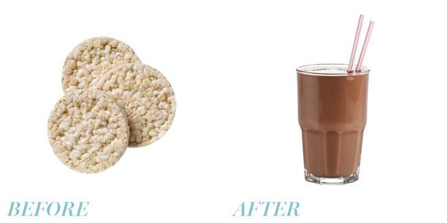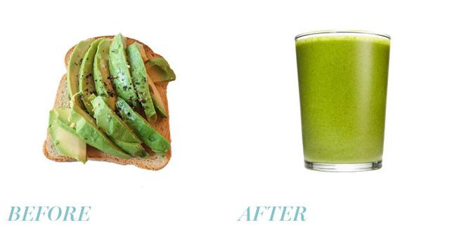 Cụ thể là một ly sinh tố với rau bina, cải kale, chuối, xoài, sữa hạnh nhân và bột protein, bất cứ dạng nào của bơ hạt quả hạch và một lát bánh mì sandwich làm từ nhiều loại ngũ cốc với trái cây; hoặc bơ nướng với một quả trứng rán hoặc chần bên trên.