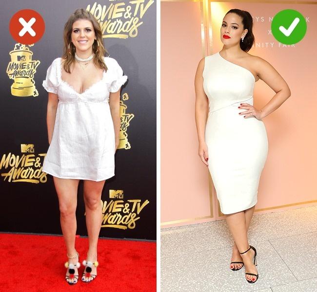 Lời khuyên: Chọn trang phục có đường cắt thích hợp với vóc dáng cơ thể sẽ tạo điểm nhấn lên ưu điểm. Chứ không nhất thiết phải tránh xa màu sáng, chăm chăm mặc màu tối,
