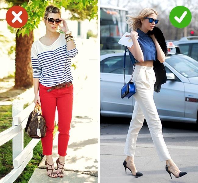 Lời khuyên: Quần ngắn trên mắt cá chân có màu sắc sáng sẽ khiến chân bạn trông ngắn hơn. Những cô nàng chân ngắn nên chọn quần ngắn nhưng cạp cao, có màu trung tính và kết hợp với giày cao gót.