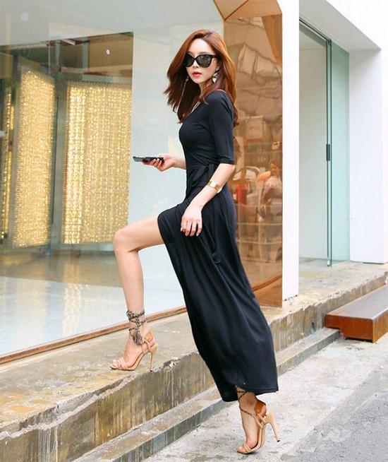 Một chiếc váy maxi xẻ đùi màu đen sẽ dành cho cô nàng cao ráo mà muốn khơi gợi nét đẹp gợi cảm, quyến rũ trong những ngày đi chơi, buổi tiệc quan trọng. Khi chọn váy maxi, bạn nên chú ý lựa những chiếc váy có chất liệu mỏng nhẹ, bay bổng để đảm bảo vừa mát mẻ lại thời thượng.