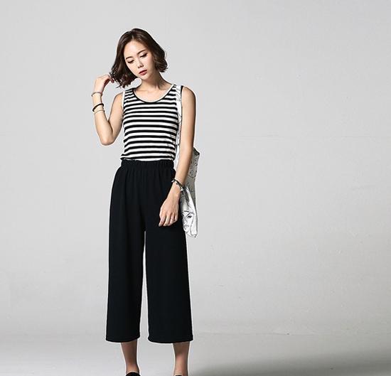 Quần culottes màu đen chính là kiểu quần bạn có thể diện ở mọi thời gian. Bạn có thể mix quần culottes màu đen với áo kẻ sọc để có vẻ ngoài hợp mốt, thời thượng và phóng khoáng.
