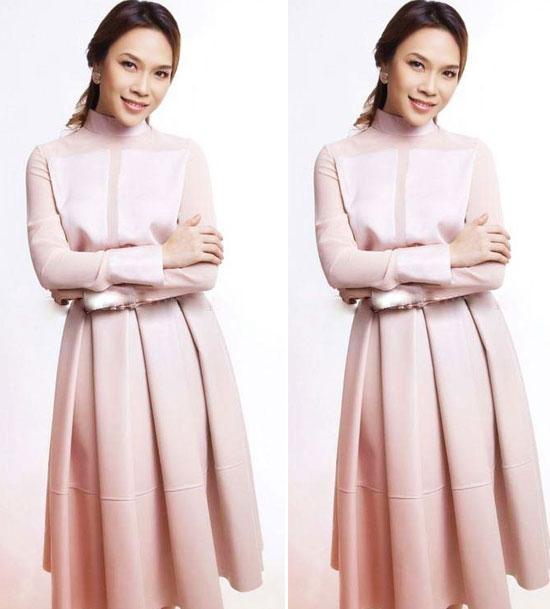 Bộ trang phục màu hồng giúp Mỹ Tâm che đi những khuyết điểm của cơ thể