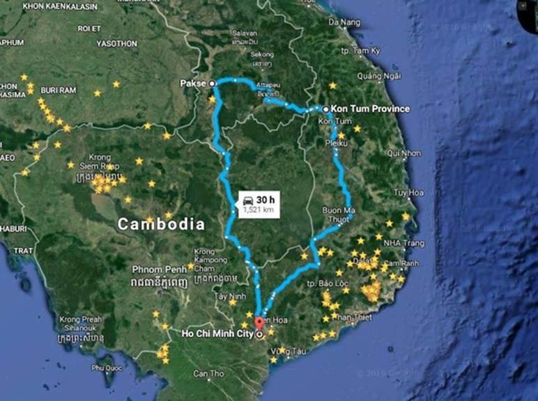 Sáng ngày 3 chạy về cửa khẩu bờ Y, qua biên giới về Việt Nam. Chạy lên check cột mốc ngã 3 Đông Dương, về Pleiku, về Kon Tum ngủ. Ngày 4 chạy về TP HCM hoặc bỏ xe lên ôtô về.