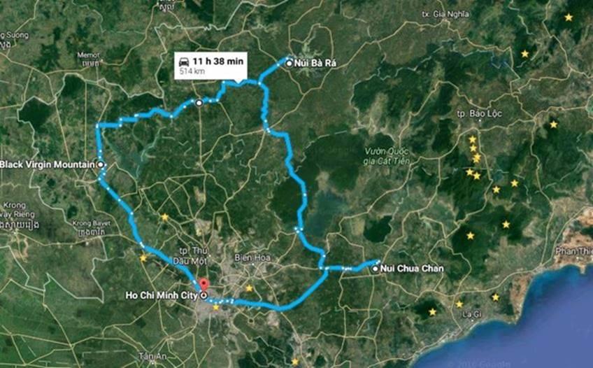Đêm ngày đầu, các bạn leo núi Bà Đen. Sáng ngày 1 xuống, chạy vòng phía bắc hồ Dầu Tiếng, về Bình Long, leo Bà Rá ngủ đêm.