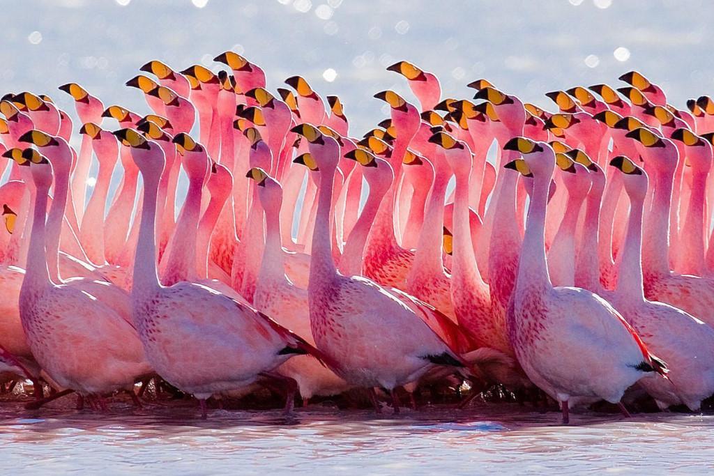 Hồng hạc: Hồng hạc có lẽ là loài chim dễ nhận biết nhất trên thế giới. Bộ lông màu hồng tía tuyệt đẹp tự khiến nó trở nên nổi bật đặc biệt giữa các loài chim khác. Có 6 loài hồng hạc sống ở mọi nơi trên thế giới, trừ Nam Cực. Một con chim hồng hạc trưởng thành có trọng lượng lên đến 3,6 kg. Chúng có chiếc cổ và đôi chân dài, cho phép bắt cá nhỏ, ấu trùng và sinh vật phù du dưới nước bùn. Ảnh: Tqn.com.