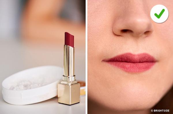 Tuy nhiên bạn cũng không nên áp dụng nhiều lần quá bởi bột bắp dễ khiến môi khô hơn. Cùng với bột bắp, bạn có thể dùng phấn phủ như vậy môi sẽ không mất đi độ ẩm cần thiết.