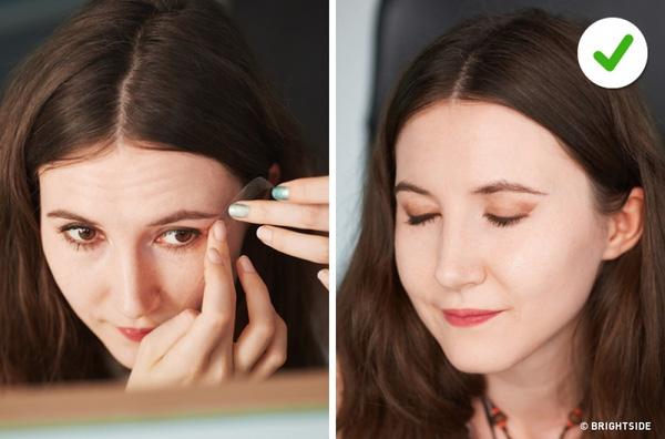 3. Dùng băng dính để hỗ trợ công đoạn kẻ viền eyeliner và tán phấn mắt