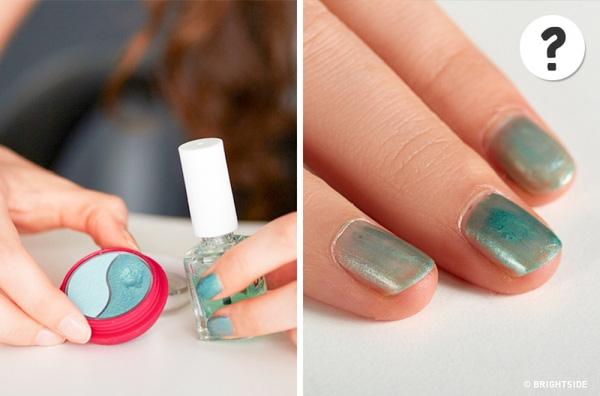 4. Trộn phấn mắt và sơn móng tay để tạo màu sơn mới