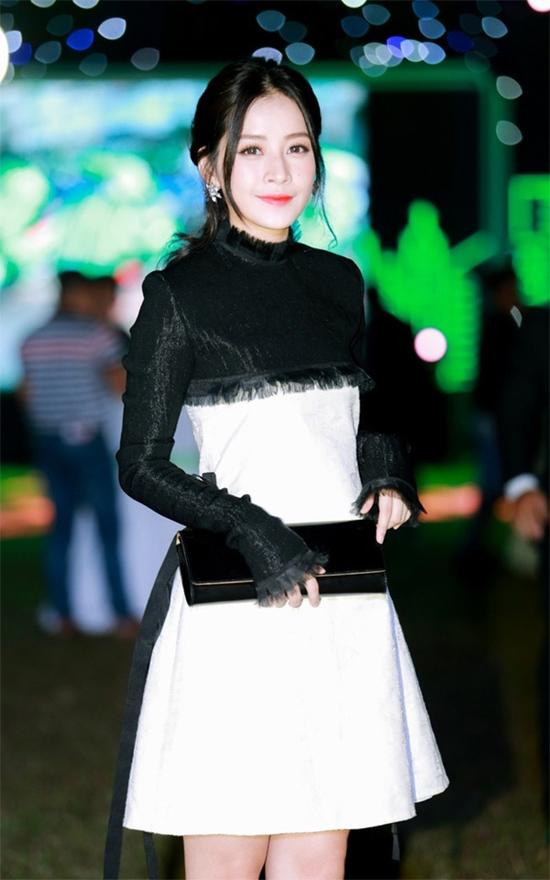 Trong sự kiện gần đây, Chi Pu diện bộ đồ ren xuyên thấu màu xanh.