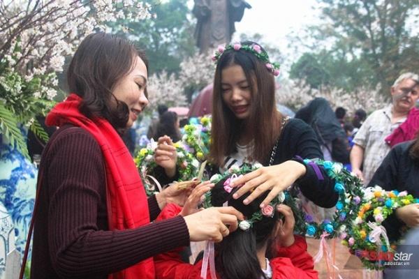 Một số bạn trẻ nhanh nhạy “cá kiếm” thêm trong lễ hội bằng việc bán những chiếc vòng hoa làm