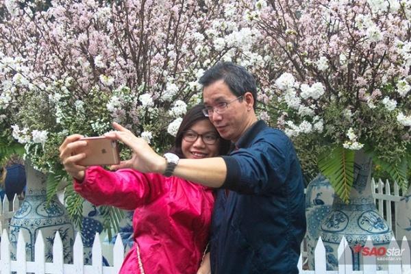 Chị Nguyễn Thị Hải Âu (36 tuổi) và con gái lặn lội từ Thái Nguyên xuống Thủ đô từ đêm hôm trước, sáng sớm hai mẹ con đã có mặt để chụp ảnh. Chị Hải Âu cho biết: “Hoa rất tươi, rực rỡ, mình rất ưng ý. Những lễ hội trước đây như lễ hội anh đào Hoàng thành hay lễ hội hoa hồng mình cũng tham dự nhưng rất thất vọng vì toàn hoa giả. Chỉ có điều, giá như thời tiết hôm nay tốt hơn…”
