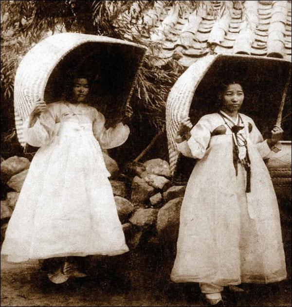 Phụ nữ Hàn xưa cũng không long lanh như bây giờ mà "mộc" hơn rất nhiều. Trong ảnh là một thứ phụ kiện giống như chiếc ô che mưa che nắng.
