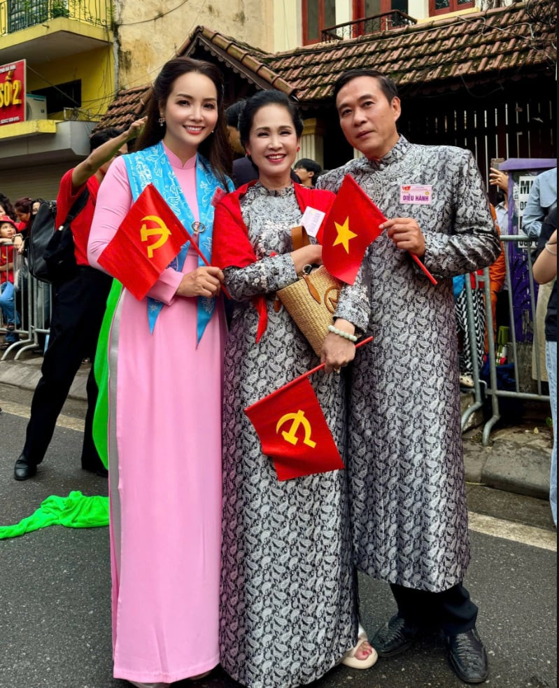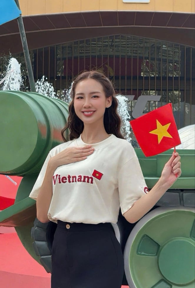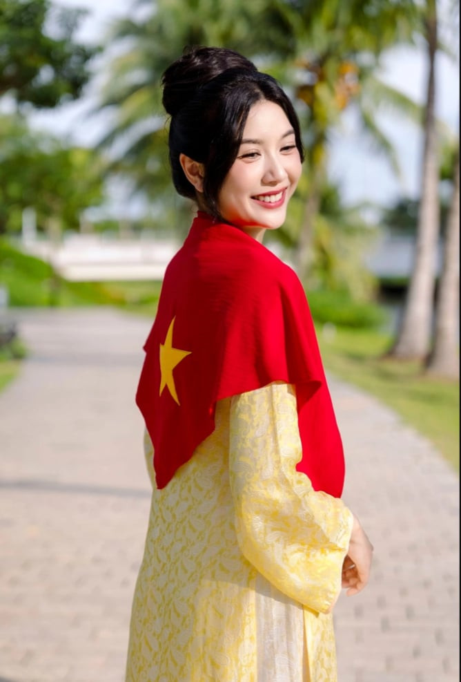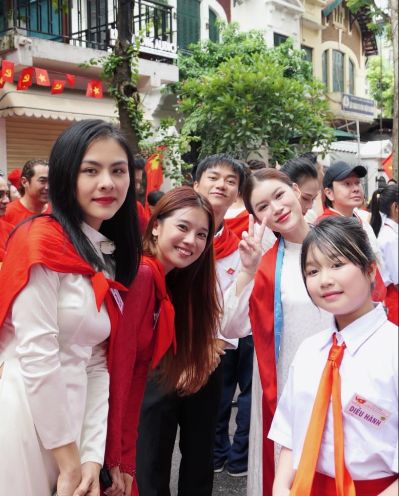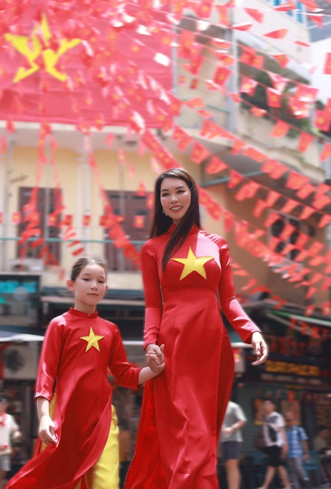 Hoa hậu Tiểu Vy thường xuyên chia sẻ diện áo dài đỏ in hình Quốc kỳ, cô chia sẻ rằng: “Tôi cảm thấy vô cùng vinh dự và xúc động khi được tham gia buổi sơ duyệt Lễ diễu binh, diễu hành kỷ niệm 80 năm Quốc khánh. Đây là cột mốc thiêng liêng của dân tộc và tôi rất tự hào khi được góp một phần nhỏ bé trong sự kiện trọng đại này".