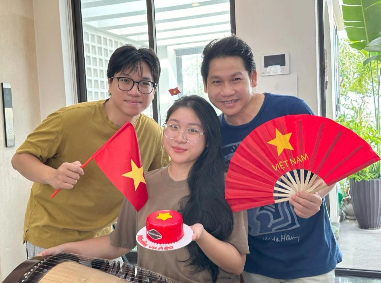 Vợ chồng diễn viên Ngọc Huyền - Đình Tú hòa chung không khí rộn ràng: "Học nghĩa trước, học văn sau/ Học yêu nước trước khi học yêu nhau".