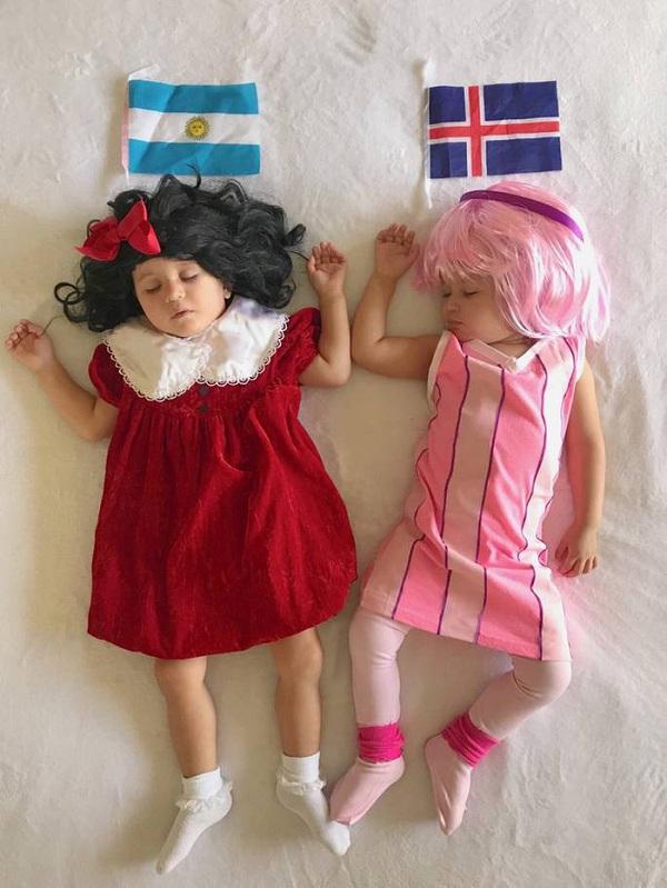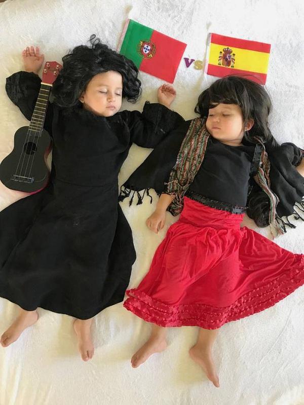 Hưởng ứng mùa World Cup, mẹ trẻ hóa trang 2 con sinh đôi thành các đội đối kháng 'gây sốt'