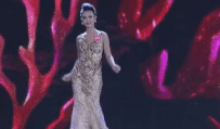 Phần catwalk với váy dạ hội của Diệu Ngân hôm 22/7. Ảnh: Hạ