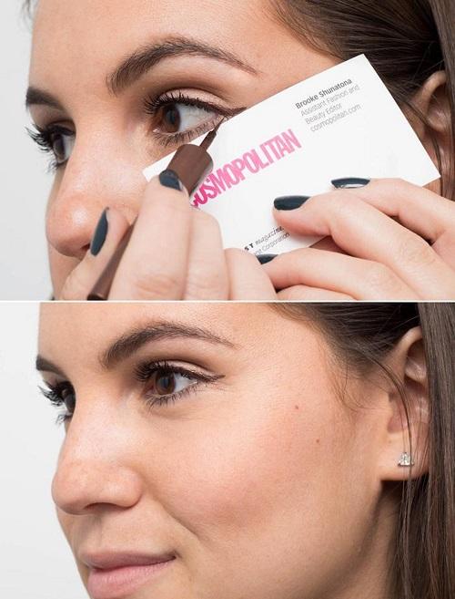 Một miếng bìa cứng nhỏ như chiếc danh thiếp của bạn cũng có thể hỗ trợ bạn việc kẻ mắt nước dễ dàng hơn. Hay khéo léo sử dụng các cạnh của miếng bìa nhỏ, bạn sẽ vẽ được những đường mắt nước sắc nét.
