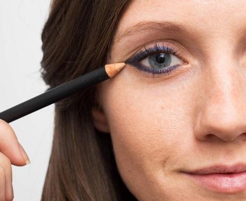 Đây là cách nhanh để bạn kẻ mắt nước còn non tay áp dụng. Đầu tiên, bạn hãy dùng chì kẻ khung trước, sau đó dùng mắt nước tô lại và vẩy nhẹ ở đuôi giúp mắt thêm sâu. Đây là cách để mắt eyeliner lên màu đậm và sắc hơn.