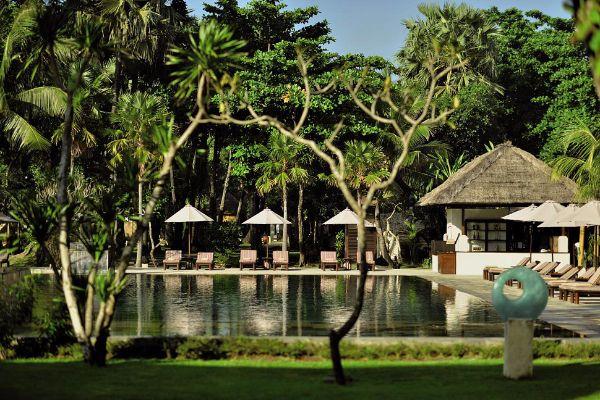 Bali là một điểm đến ưa thích của du khách trên thế giới. Hồ bơi trong khu nghỉ mát Jimbaran là nơi bạn nên ghé thăm nếu có dịp đến Bali. Hồ bơi này nằm gần một trong những bãi biển đẹp nhất ở Bali. Màu xanh ngọc bích của hồ bơi làm nó trông không khác gì hồ băng ở Nam cực. Thế nhưng, ở đây lại ấm áp với cảnh quan xung quanh đậm chất nhiệt đới với cọ và dừa. Những thác nước ngọt, vườn hoa quanh hồ càng làm nó trở nên hữu tình, đáng là nơi để thư giãn.