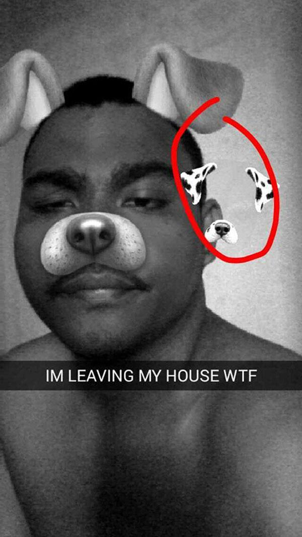 11. Rõ ràng chỉ ở trong phòng 1 mình nhưng khi sử dụng filter chụp ảnh của Snapchat, thành viên TwerkingPokemon đã giật mình khi thấy điện thoại quét ra 2 khuôn mặt. Một mặt là của anh rồi vậy còn mặt còn lại là của ai?
