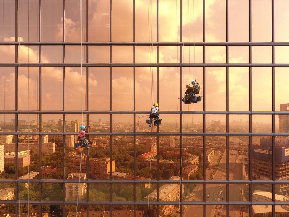 Bức ảnh này của Alexey Goncharov, từ Nga, chụp khi đang ngồi trên một băng ghế trong trung tâm thương mại quốc tế Moscow. Hình ảnh phản chiếu trong kính khiến người xem có cảm giác những người công nhân đang lau rửa cả thành phố mà không chỉ là cửa sổ của tòa nhà. Ảnh giành vị trí thứ 2.