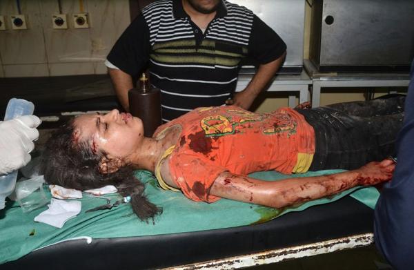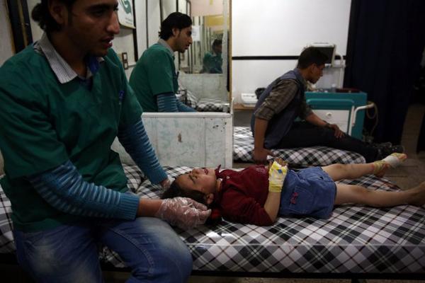 Một bé gái Syria bị thương nặng trong cuộc pháo kích tại khu phố Meidan, phía bắc Aleppo ngày 27/5/2016