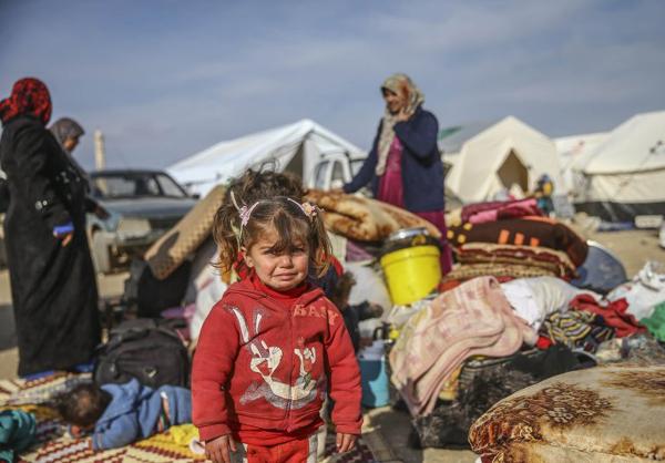 Hình ảnh em bé di cư sống trong lều tạm ở biên giới Thổ Nhĩ Kỳ - Syria. Cô bé cùng gia đình chạy trốn khỏi cuộc chiến tại quê nhà.