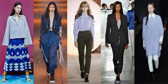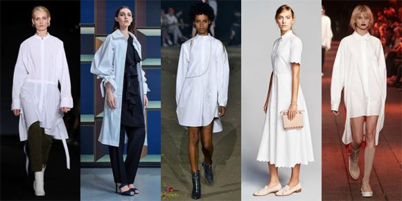 Những chiếc áo sơ mi trắng dáng váy vẫn khẳng định chỗ đứng không thể thiếu trên sàn diễn năm nay. Đây là mốt dành cho chị em có thể thoải mái mặc trong nhiều hoàn cảnh. Trang phục từ các nhà mốt Rag & Bone, Lie Sangbong, 3.1 Phillip Lim, Banana Republic, DKNY.