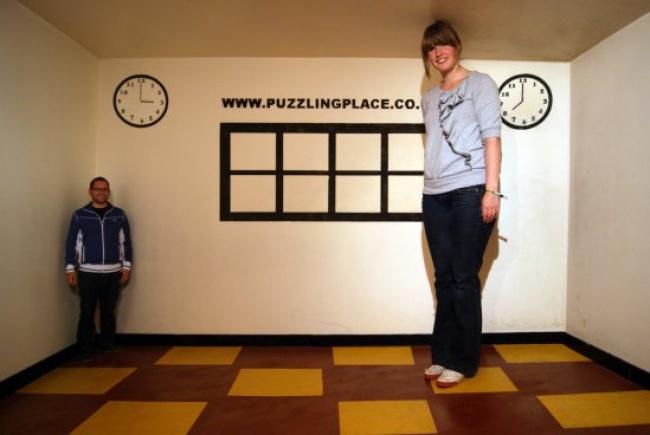 4. Người phụ nữ khổng lồ và người đàn ông tí hon? Ồ không, thực ra vấn đề không nằm ở kích thước của họ mà nằm ở góc nhìn của chúng ta và không gian đặc biệt của căn phòng này đấy ạ.