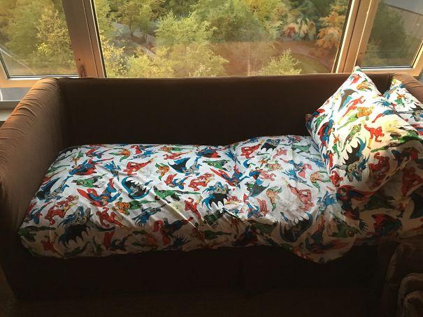 4. Nghe tin tôi sắp về nhà chơi, mẹ đã ra siêu thị mua một bộ ga gối mới. Đây là thành quả. Nó rất đẹp nhưng hình như mẹ quên mất là tôi đã 34 tuổi rồi.