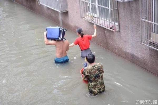 Thật không thể tin nổi, sống giữa thủ đô Bắc Kinh hoa lệ mà cũng có lúc người dân phải lội nước bì bõm như thế này đây.
