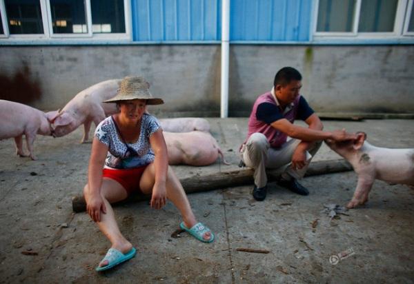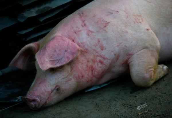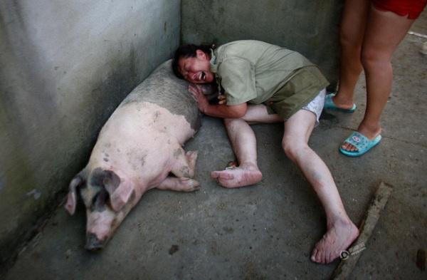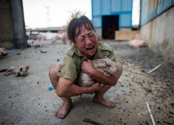 Người phụ nữ đau đớn gào khóc khi chứng kiến đàn lợn mà mình mất bao công chăm bẵm nay đã chết gần hết.
