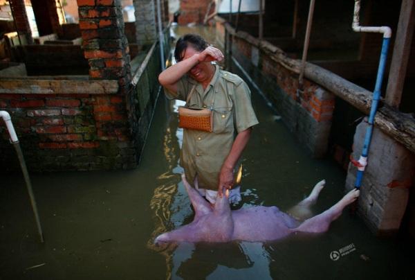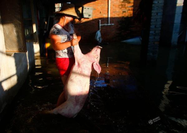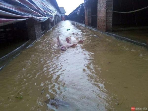 Những đàn vật nuôi khó lòng sống sót khi chìm trong nước lũ.
