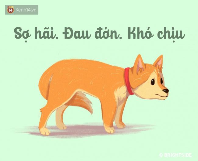 Khi sợ hãi, đau đớn hoặc khó chịu, loài chó sẽ kẹp đuôi vào giữa hai chân sau. Vì