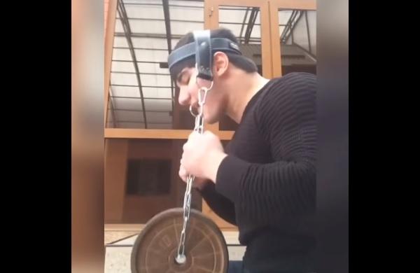 Để có được chiếc cổ khác thường này, Askhab phải đeo tạ lên đầu, dùng cổ nâng tạ để cơ cổ phát triển.