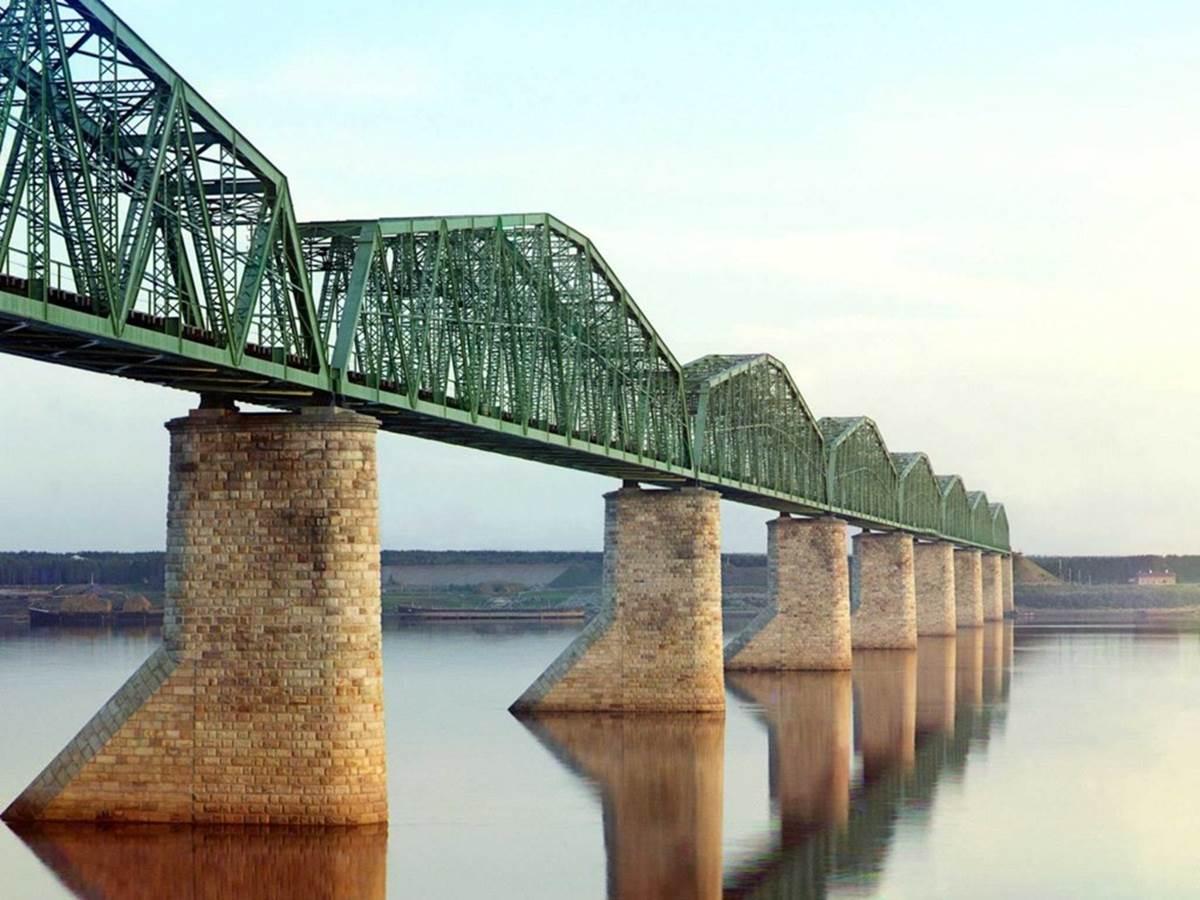 Cầu móng bê tông, khung sắt bắt ngang sông Kama (thành phố Perm). Cây cầu