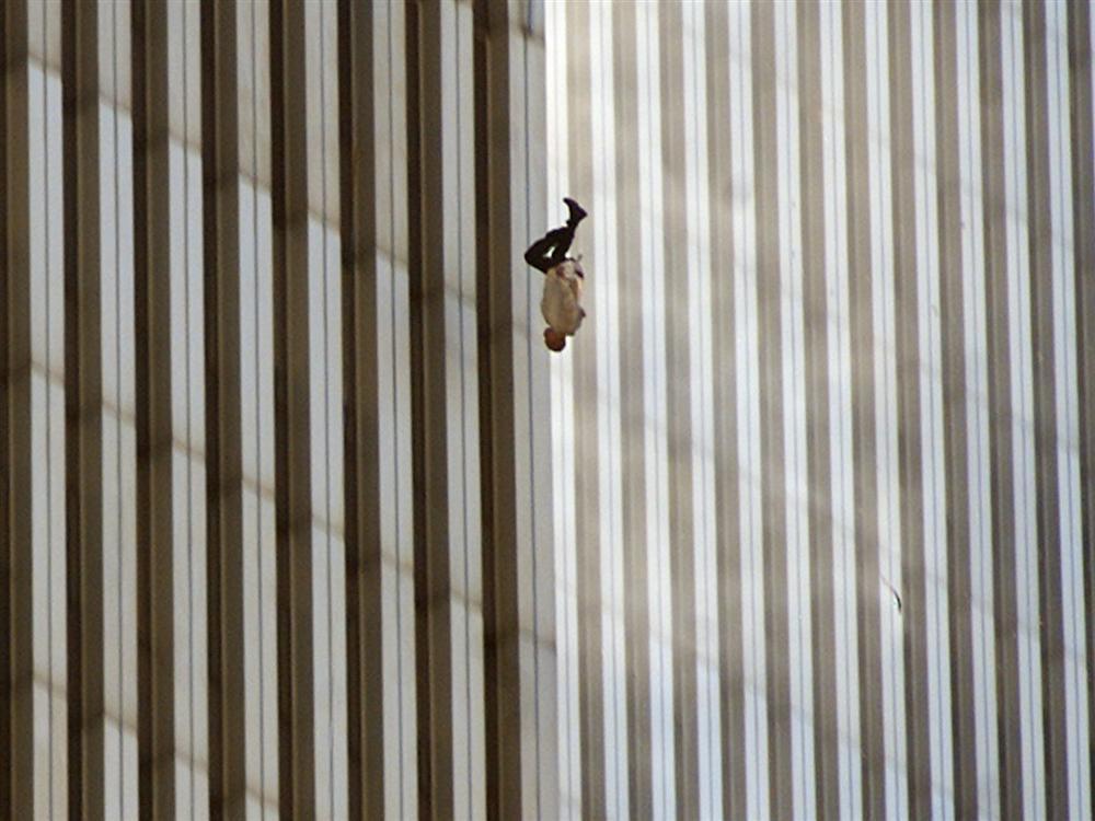 Bức ảnh "The Falling Man" của Richard Drew có lẽ là bức ảnh ấn tượng nhất trong thảm họa này. Người ta không thể xác định danh tính của người đàn ông trong ảnh, nhưng nó đã để lại một nỗi ám ảnh với bất kỳ ai nhìn thấy. Nguồn: AP