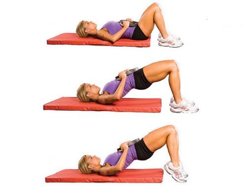 + Lấy hai tay làm trụ rồi từ từ nâng phần hông, bụng lên sao cho vai và đầu vẫn chạm mặt sàn. Giữ tư thế này trong ba giây rồi trở về vị trí ban đầu. Thực hiện lại thứ tự động tác cho tới khi kết thúc bài tập.