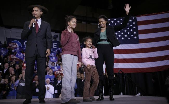 1. Malia và Sasha Obama xuất hiện cùng bố mẹ trước những người ủng hộ trong cuộc tranh cử Tổng thống Mỹ tại Des Moines, Iowa vào năm 2008. Khi đó, Malia mới 9 tuổi còn Sasha mới lên 6.