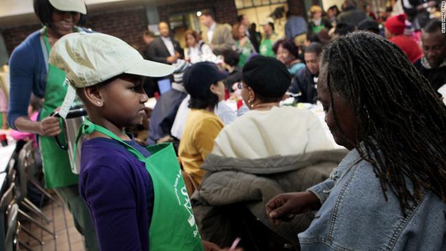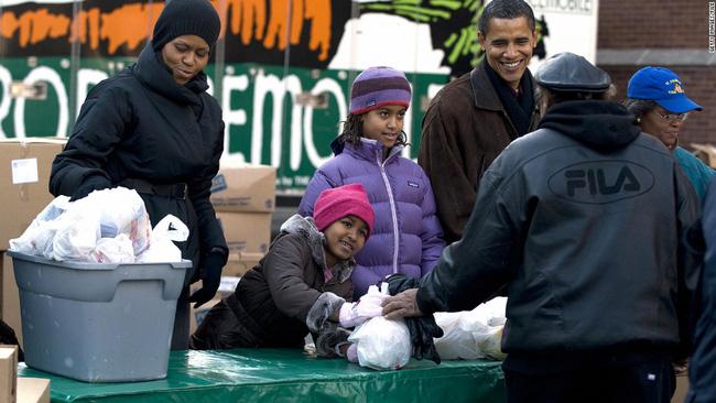 2. Gia đình ông Obama phân phát thức ăn nhân ngày lễ Tạ ơn ở quê hương Chicago vào tháng 11/2008, sau khi ông Obama giành chiến thắng trong cuộc đua vào Nhà Trắng.