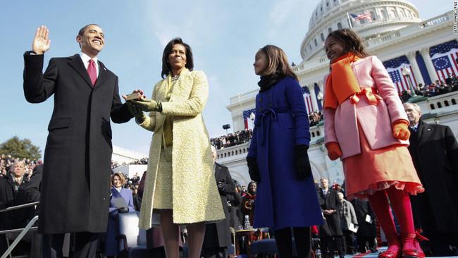 3. Malia và Sasha chứng kiến lễ nhậm chức của cha tại đồi Capitol vào ngày 20/1/2009.