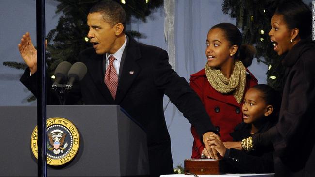 9. Với sự giúp đỡ của vợ và 2 cô con gái, Tổng thống Obama đã nhấn nút thắp sáng cây thông Noel tháng 12/2009.